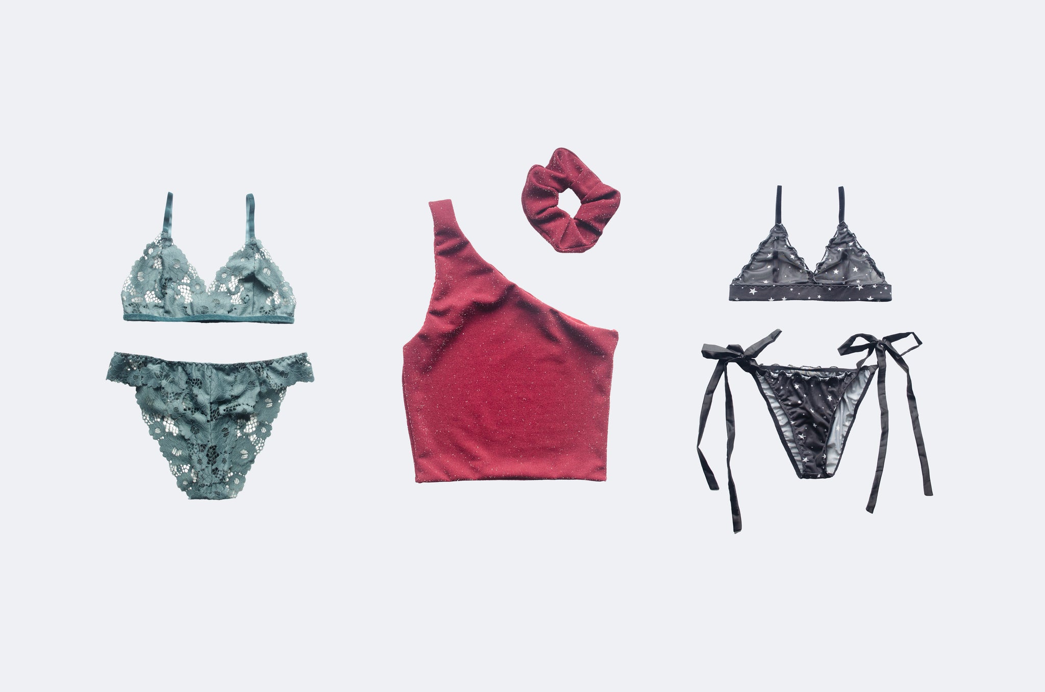 Fabric: Stretch mesh, stretch lace, deadstock jersey
