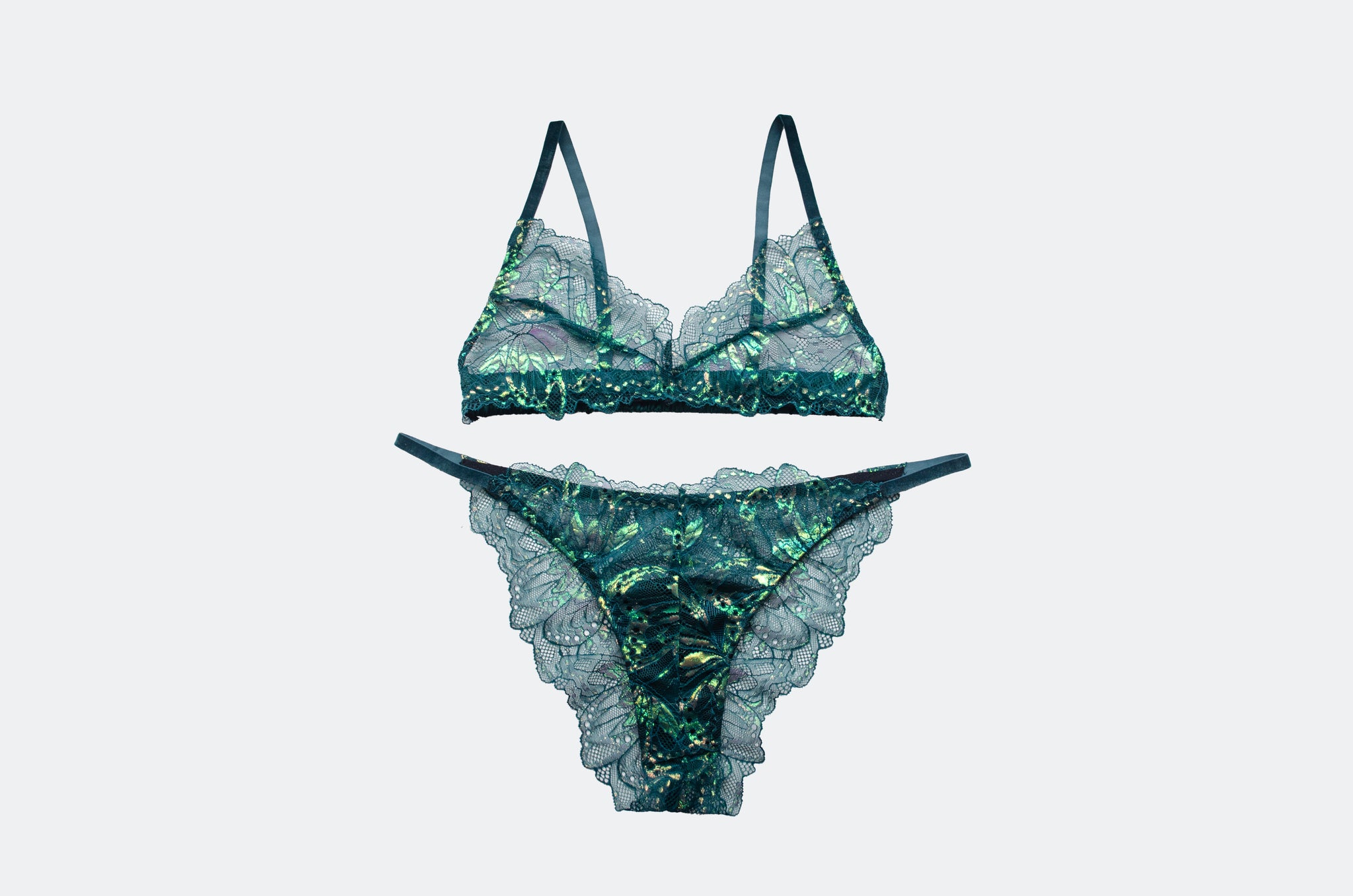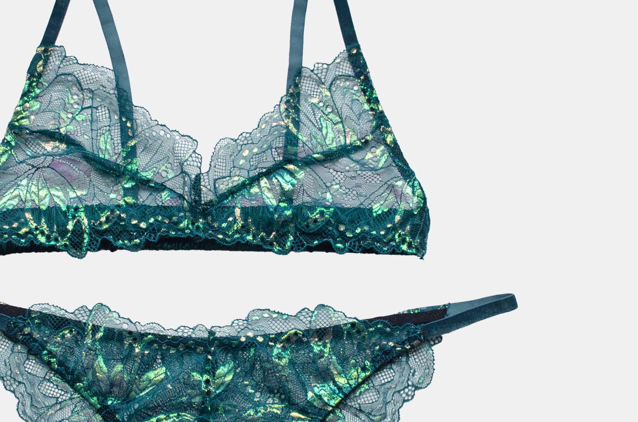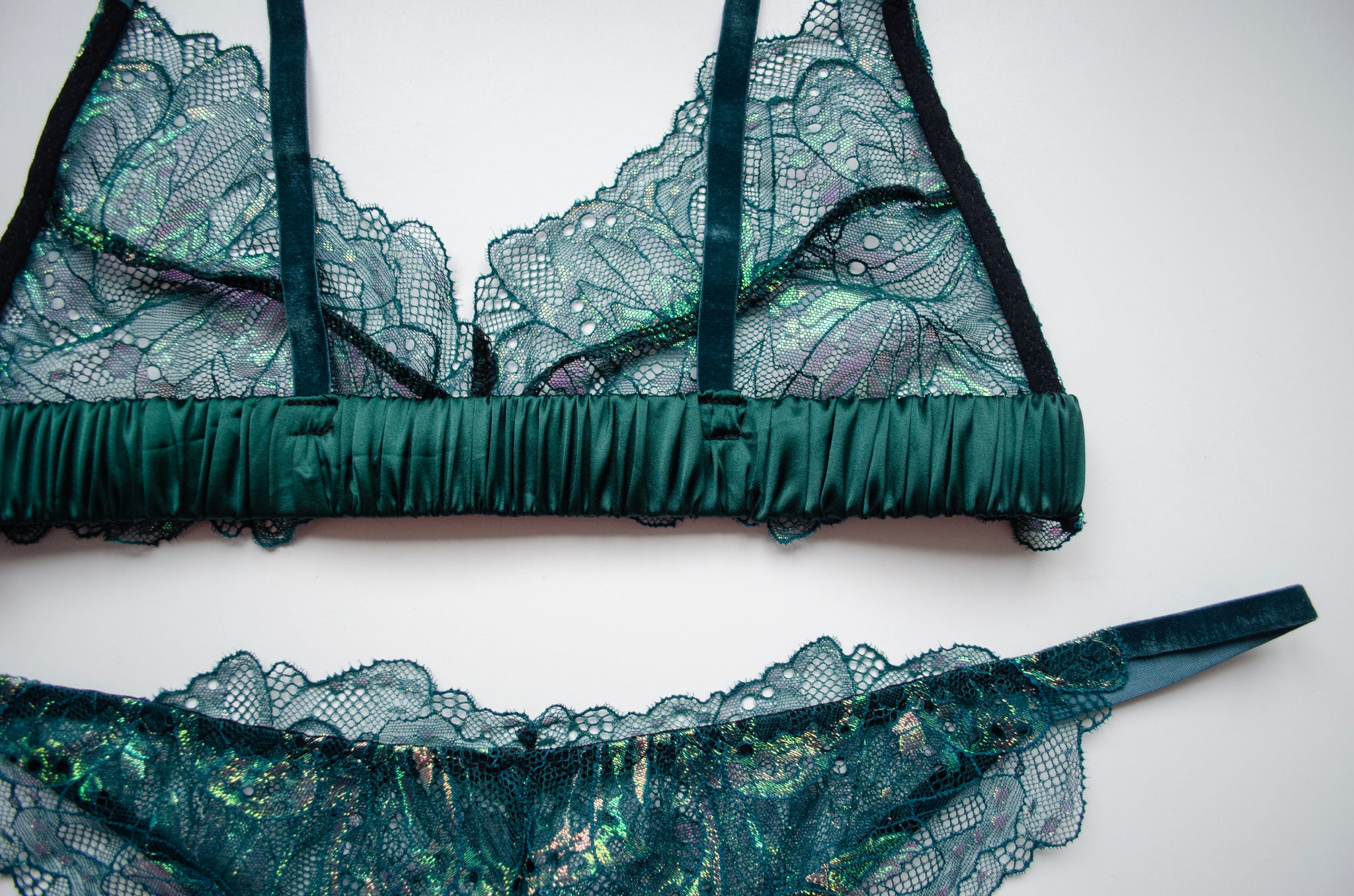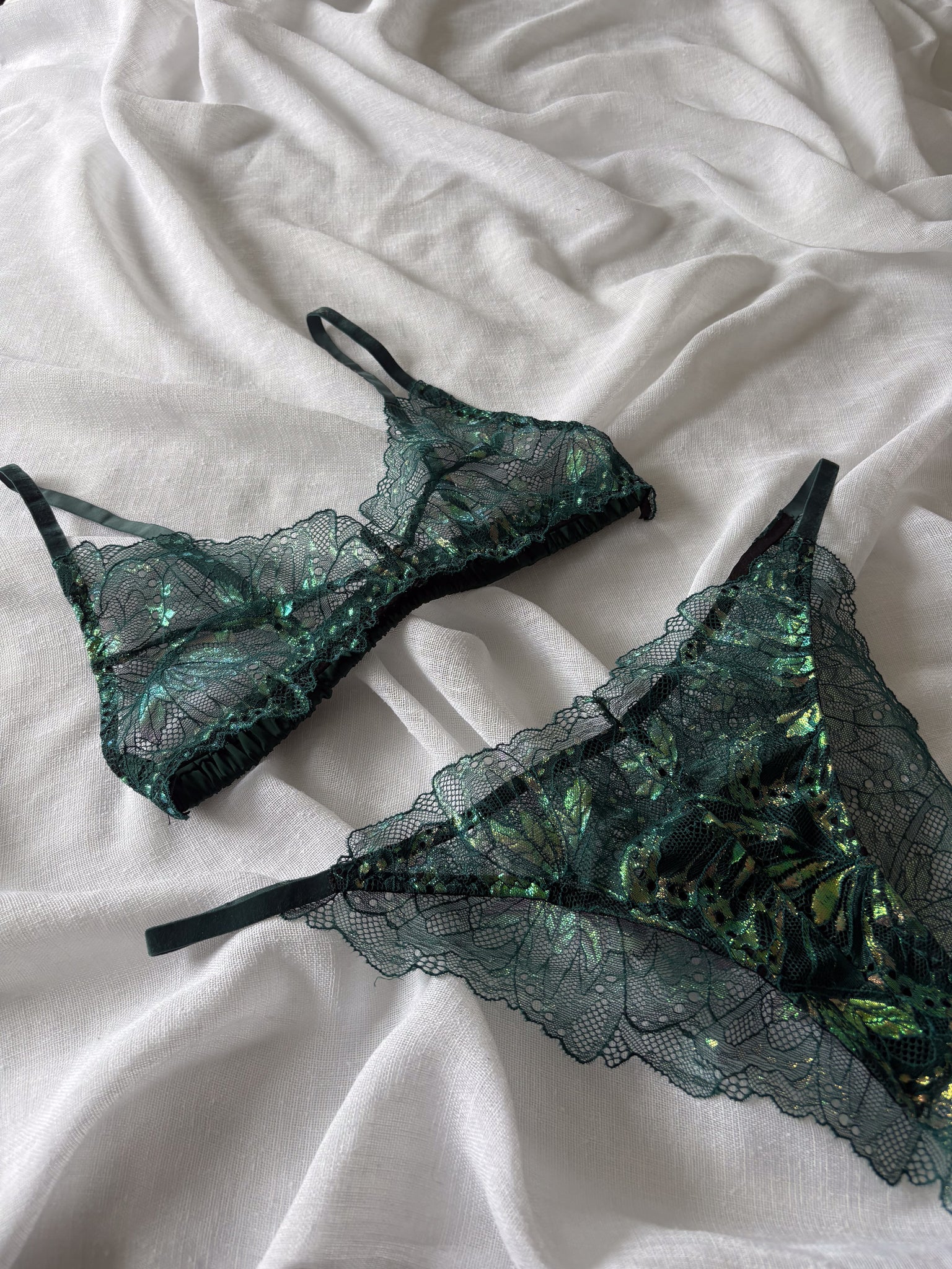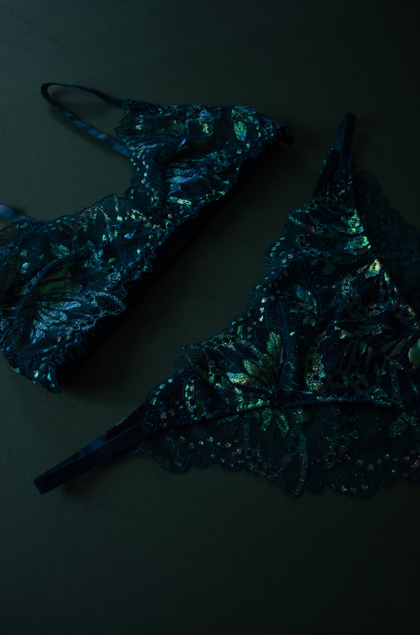 If fairy wings were made into lace this is what they would look like. Soft stretch lace, plunge style cut bralet and silky satin band.